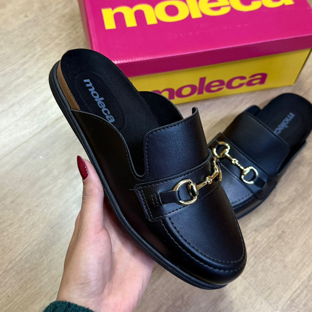 O Mule Moleca Nó Dourado 5826.101 é a escolha perfeita para quem busca praticidade com um toque de sofisticação. Com design minimalista e acabamento em napa macia, ele traz detalhe de fivela dourada que remete à elegância dos mocassins clássicos. O modelo sem traseira facilita o calce, enquanto o solado flexível proporciona conforto no uso diário. Ideal para produções modernas e versáteis, combina com looks casuais e até office looks descomplicados.