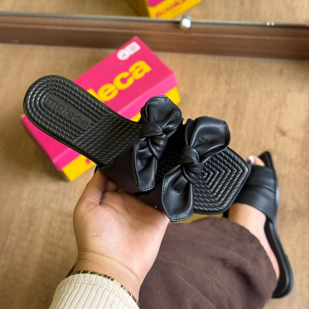 A Sandália Rasteira Moleca Dois Laços combina conforto e estilo com seu design moderno e delicado. Ideal para quem busca elegância discreta no dia a dia, oferece solado emborrachado que garante ótima aderência e palmilha macia para maior conforto. Os dois laços acrescentam um charme sutil, tornando-a versátil para diversas ocasiões. Perfeita para quem valoriza praticidade sem abrir mão da sofisticação.