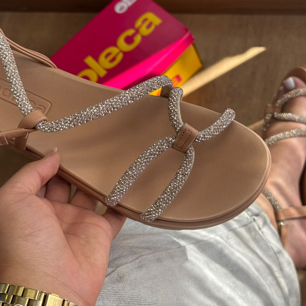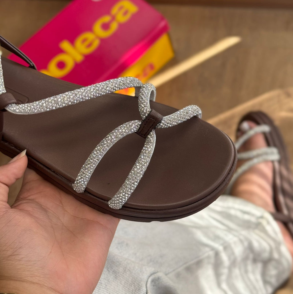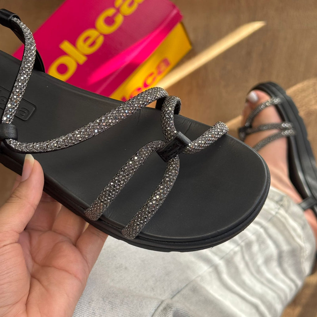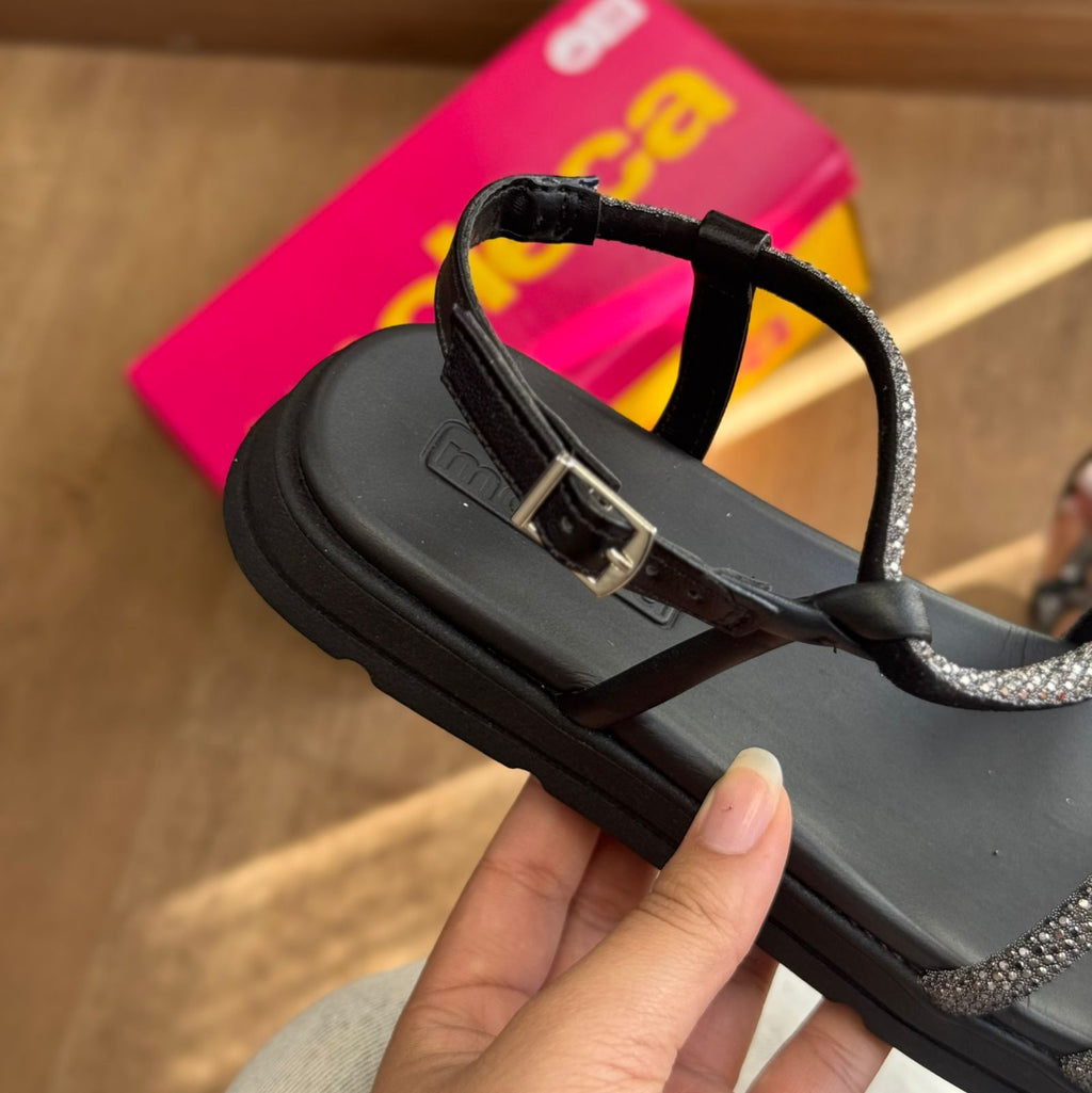 Papete Moleca com tiras em strass que combina conforto e elegância para o seu dia a dia. O design sofisticado dos detalhes em strass adiciona um toque de brilho e feminilidade, enquanto a estrutura da Moleca garante o suporte necessário para longas jornadas. Perfeita para quem busca um calçado versátil que transita entre o casual e o mais refinado, sem abrir mão do bem-estar dos pés.
